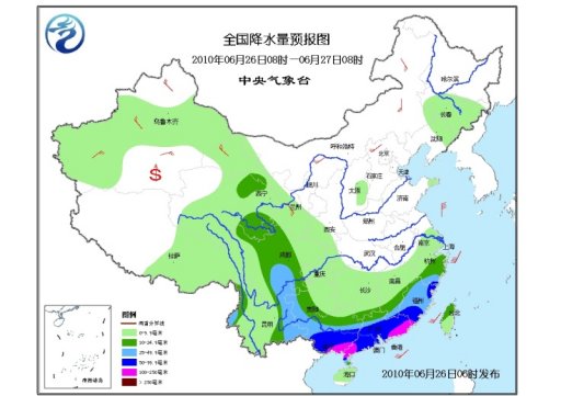 中央氣象臺(tái)今晨繼續(xù)發(fā)布暴雨藍(lán)色預(yù)警:預(yù)計(jì),6月26日08時(shí)到6月27日08時(shí),浙江南部、江西南部、福建大部、廣東大部、廣西中南部有大雨或暴雨,局地有大暴雨,上述部分地區(qū)并伴有短時(shí)雷雨大風(fēng)等強(qiáng)對(duì)流天氣。請(qǐng)當(dāng)?shù)乩^續(xù)注意城市和農(nóng)田的排澇;山區(qū)的朋友應(yīng)加強(qiáng)地質(zhì)災(zāi)害的防御。