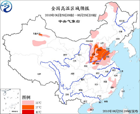中新網6月29日電 中央氣象臺29日06時繼續發布高溫藍色預警:預計,今天白天,內蒙古東北部和中部的部分地區、黑龍江西北部、山西大部、河北大部、天津、河南大部、山東大部、安徽北部、江蘇西北部、福建北部和南部的部分地區、江西東北部的部分地區、海南北部等地有35~37℃、部分地區38℃的高溫天氣,其中,河北南部的局部地區氣溫可達40℃。