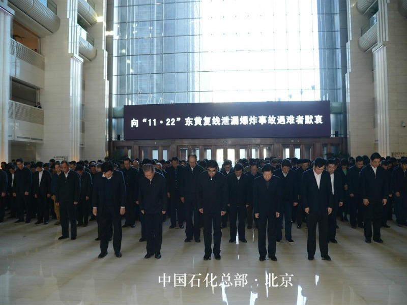 中石化百萬員工哀悼青島爆燃事故遇難者