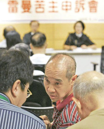 民建聯24日舉行的申訴大會,吸引40至50名投資者出席。受害人在申訴大會上仍然情緒激動。50多歲的小販蕭貴清說:“我現在想死!”他因坐骨神經痛,剛在幾個月前退休,多年工作儲了600萬元“棺材本”,原打算在銀行做定期存款,及后銀行經理向他推銷雷曼迷你債券,蕭不虞有詐,投資整副身家。