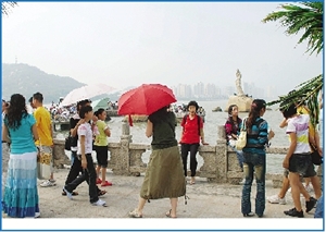 據(jù)珠海市旅游局統(tǒng)計(jì),9月該市共接待港澳臺(tái)過(guò)夜游客5.6萬(wàn)人次,其中澳門游客僅1000余人次,同比分別劇減40%和45%。累計(jì)今年首3個(gè)季度該市共接待入境游客132.4萬(wàn)人次,其中香港客44.1萬(wàn)人次、澳門客16.2萬(wàn)余人次,較上年同期分別下降約5%。