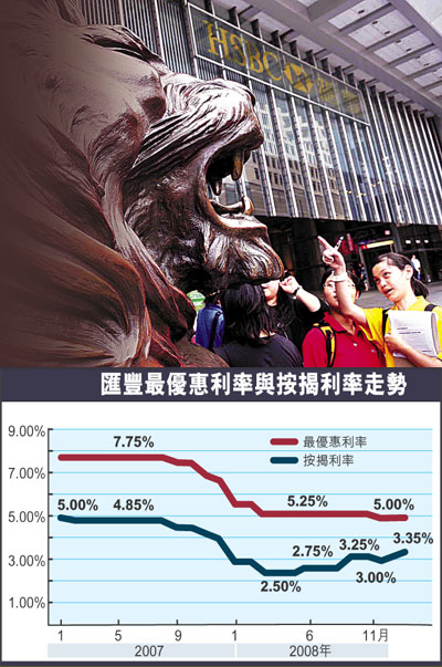 在11月初匯豐帶頭減最優惠利率25點子(100點子=1厘)后,雖然大部分銀行于數日內都跟隨減息,但其后不久,不少銀行又偷偷將新造按息上調0.25厘至0.5厘。如渣打香港早前就大幅上調新造按息1厘,實際息率為3.75厘至4厘。