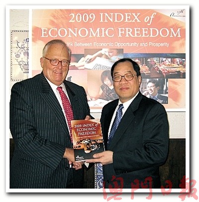 中新網1月14日電 《澳門日報》今日在頭條刊發報道稱,美國研究機構公布2009年“全球經濟自由度指數”報告,澳門首次登榜,在全球179個經濟體中排名第21位,亞太地區則位列第6位,屬于“較為自由”級別。