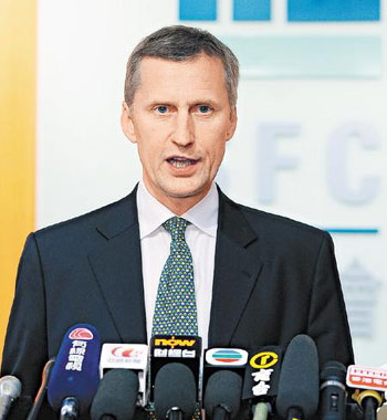 證監(jiān)會行政總裁韋奕禮22日傍晚臨時會見傳媒,公布該會與新鴻基投資服務達成協(xié)議的消息。他指出,這次處理方法所達致的成果,符合投資者的最佳利益,對這宗個案所達致的結(jié)果感到相當滿意。
