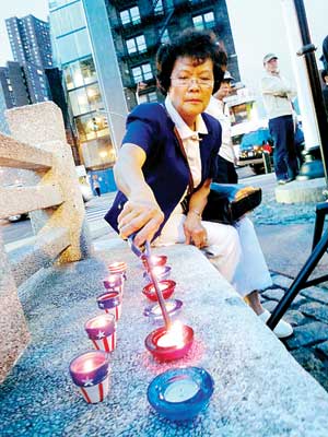 11日晚間7時(shí),在莊嚴(yán)的國(guó)歌聲中,燭光晚會(huì)在華埠且林士果舉行。應(yīng)邀出席的紐約市華裔主計(jì)長(zhǎng)劉醇逸,市議員陳倩雯、顧雅明,中華公所代主席徐澄宇等在發(fā)言中表示,“911”是人類的一次災(zāi)難深重的浩劫,給民主、自由、祥和、繁榮的美國(guó)帶來(lái)極大的負(fù)面影響,特別是鄰近世貿(mào)廢墟的華人社區(qū),在精神、經(jīng)濟(jì)上更是遭受了前所未有的打擊,因此紀(jì)念“911”對(duì)華埠來(lái)說(shuō)意義重大,大家不要忘記死難者,也不要忘記華埠至今仍然未能全面復(fù)蘇。參加活動(dòng)的人士均希望這樣的悲劇不要再次發(fā)生,同時(shí)也希望國(guó)民一起努力,盡快走出目前的經(jīng)濟(jì)困境,一起建設(shè)這個(gè)美好的國(guó)家。