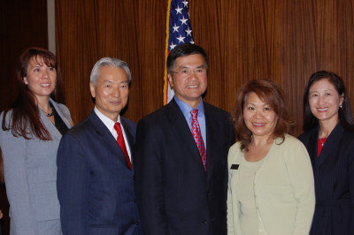 西雅圖生長的駱家輝受到拉斯維加斯亞裔商會熱忱歡迎,拉斯維加斯亞裔青年學生代表多人也經亞商會安排與駱家輝見面。他表示欣喜青年學子參政,并勉勵大家努力向前。(馮鳴臺)