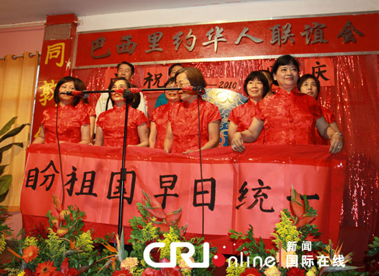 當?shù)貢r間19日下午,巴西里約熱內盧第一大華人社團——里約華人聯(lián)誼會舉行聯(lián)歡會,慶祝新中國61歲生日。中國駐里約熱內盧副總領事李春梅,華人聯(lián)誼會會長季友松,以及當?shù)刂匾獌S領均出席活動。