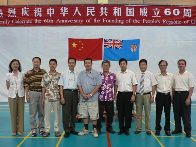 中新網(wǎng)9月21日電 據(jù)中國外交部網(wǎng)站消息,20日上午,座落在斐濟(jì)首都蘇瓦的華人學(xué)校斐濟(jì)逸仙學(xué)校禮堂座無虛席,600多華人華僑和中資機(jī)構(gòu)代表濟(jì)濟(jì)一堂,出席斐濟(jì)中國和平統(tǒng)一促進(jìn)會(huì)和華人協(xié)會(huì)聯(lián)合舉辦的慶祝中華人民共和國成立60周年升旗儀式和文體活動(dòng)。活動(dòng)在莊嚴(yán)的中斐國歌聲中開始。韓志強(qiáng)大使及和統(tǒng)會(huì)會(huì)長袁炳棠和華人協(xié)會(huì)會(huì)長司徒新耀分別發(fā)表了熱情洋溢的致辭。