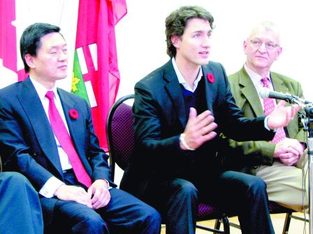 中新網(wǎng)11月12日電 據(jù)加拿大《明報(bào)》報(bào)道,加拿大前總理杜魯多兒子,被視為政壇未來(lái)新星,現(xiàn)為蒙特利爾國(guó)會(huì)議員兼自由黨青年及多元文化事務(wù)評(píng)論員的賈斯廷(Justin Trudeau),10日到訪以其父親命名,位于萬(wàn)錦市的Pierre Elliott Trudeau High School之余,順道探訪萬(wàn)錦加華聯(lián)會(huì),并與中文傳媒會(huì)面,除分享其個(gè)人對(duì)從政感受之余,并收集華社對(duì)政府有關(guān)政策意見(jiàn),以便在國(guó)會(huì)做出反映。