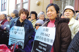 八名年齡在69至89歲的長者,居住在北岸的一棟老樓中公寓已經有幾十年。華協中心公布的資料顯示,大廈易手,新業主在2007年11月購入后, 為了謀求更多利潤, 在去年以“艾利斯法案”要求所有住客在120天內遷出他們已居住了差不多半個世紀的家園, 并把公寓轉為“產權共有”。雖然業主的逼遷限期早已過了數周,這些無助的長者堅決在寒冬下守護家園。