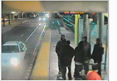 舊金山警方公布了灣景區公車站月臺華裔婦人被攻擊案的錄像帶 ,錄像帶顯示受害婦人在三街公交車月臺上設法避開五名非裔少年。 (美國《世界日報》舊金山警方提供)
