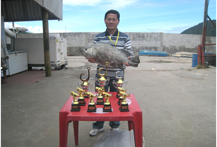 23日中午,大家滿載著喜悅和收獲陸續回到岸邊。在簡短的頒獎儀式上,頒發了獎杯和獎金。會長吳耀宙先生以單條最重獲得第一名,成績是7.18kg,并獲得獎金800元;獲得第二名的是來自韓國的DANIEL李先生,成績是5.98 kg,并獲得獎金500元;獲得第三名的是ANDRE陳先生,成績是5.00 kg,并獲得獎金300元。7條船上的優勝者也得到獎杯和紀念品。