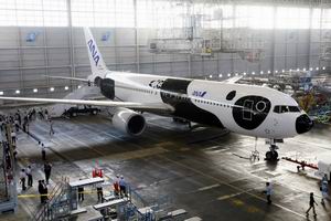為了迎接源源不斷的中國游客,全日空公司專門將搭載中國乘客的飛機裝涂上熊貓的圖案。(《日本新華僑報》圖片)