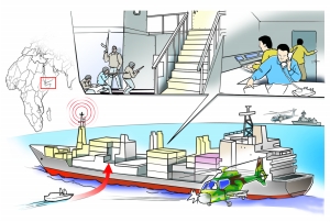 摩迪說,國際海事組織發出救援要求后,立即有一艘軍艦和兩架直升機趕赴現場。但等到直升機率先趕到時,船員們已經與海盜鏖戰了整整5小時。