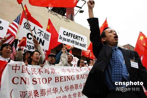4月9日,北京奧運火炬在舊金山傳遞,CNN主持人卡弗蒂稱“在過去五十年里中國人基本上一直是一幫暴民和匪徒”,激起華人社區(qū)憤怒。紐約居民梁淑冰聯(lián)合中國公民李麗蘭(音譯),向CNN、主持人卡弗蒂和CNN母公司特納廣播公司提出集體訴訟,要求賠償13億美元,獲當(dāng)?shù)匾患衣?lián)邦法院受理。