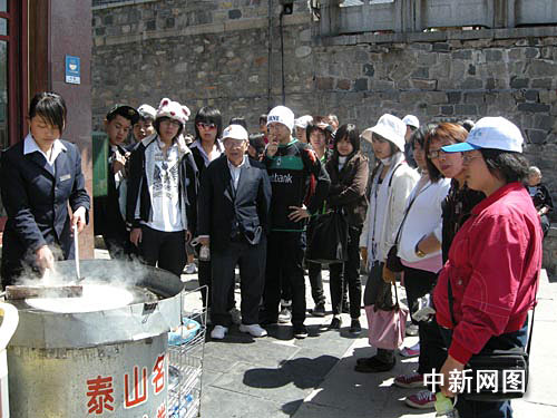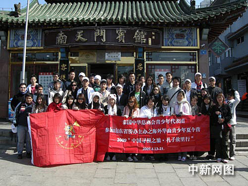 中新網泰安4月17日電(記者 孫弘 通訊員 寧沙沙)2009海外華裔青少年“中國尋根之旅.孔子故里行”夏令營的70余名營員們,今天登上了中華民族精神象征的泰山,領略了雄偉壯麗的泰山風光和博大精深的泰山文化。