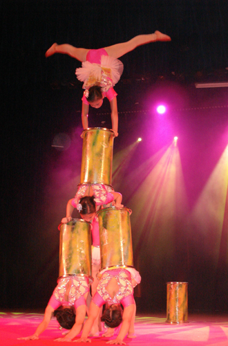 藝術小組由重慶市雜技團優秀中、青年演員組成。當晚,他們為觀眾表演了空竹、鉆桶、轉盤子、柔術以及魔術、川劇變臉等精彩節目,博得了觀眾一陣陣熱烈的掌聲。