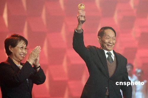 3月29日晚,“世界因你而美麗--2007影響世界華人盛典”頒獎典禮,在北京大學(xué)百周年紀(jì)念講堂舉行。在科學(xué)研究、公共事務(wù)、體育競技、文化藝術(shù)等領(lǐng)域,榮獲“2007影響世界華人大獎”的11位杰出華人揭曉。“雜交水稻之父”袁隆平榮膺“2007影響世界華人終身成就獎”,全國人大常委會副委員長烏云其木格為其頒獎。中新社發(fā) 廖文靜 攝