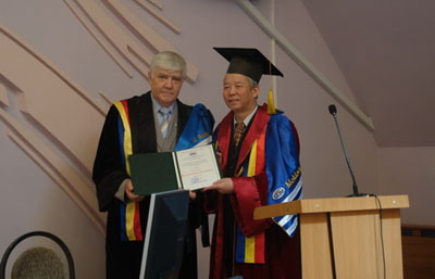 中新網7月5日電 據中國外交部網站消息,近日,為了表彰中國駐摩爾多瓦大使施隆壯在加強中摩文化教育領域的合作和為在當地建立孔子學院所做出的突出貢獻,摩爾多瓦自由國際大學授予施隆壯榮譽博士學位。摩自由國際大學舉行了隆重的授予學位儀式,該校校長加爾班親自主持,全體教師出席。