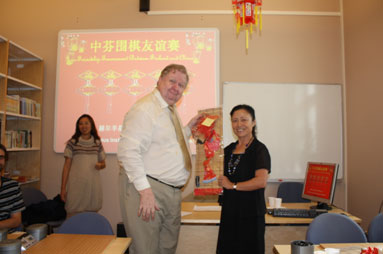 比賽共決出6位優(yōu)勝者,由孔子學(xué)院中方院長(zhǎng)李遠(yuǎn)征為獲獎(jiǎng)選手頒獎(jiǎng)——典雅的中國(guó)仕女竹掛簾和印有孔子學(xué)院字樣的購(gòu)物兜。在頒獎(jiǎng)儀式上,李遠(yuǎn)征盛贊此次圍棋比賽對(duì)促進(jìn)中芬友誼的意義,并希望芬蘭人民通過(guò)孔子學(xué)院的活動(dòng)和教學(xué)更多了解中國(guó)。