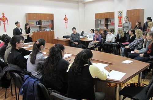 中新網(wǎng)10月29日電 據(jù)國家漢辦網(wǎng)站消息,10月24日,烏克蘭哈爾科夫大學(xué)孔子學(xué)院成功舉辦了“漢字書寫”和“中文朗讀”比賽。這場漢語比賽吸引了哈爾科夫大學(xué)孔子學(xué)院70余人參加,比賽場面緊張而激烈。