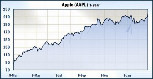 受蘋果宣布iPad發售日期的影響,公司股價上周五創下了219.70美元的歷史新高,打破了今年1月5日創下的215.59美元的最高紀錄。