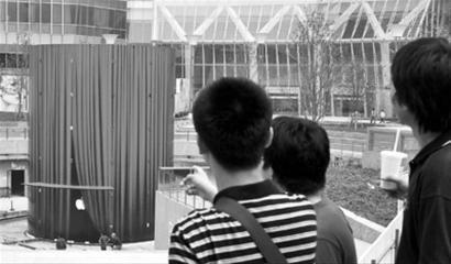 只不過揭開了紅色帷幕的一角,眾多“蘋果粉絲”已經(jīng)按耐不住激動的心情,紛紛實(shí)地圍觀這座神秘建筑。