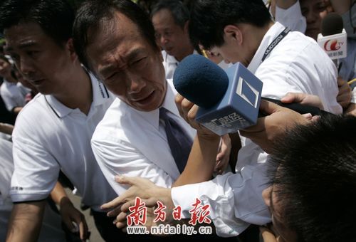 最后,隨郭臺銘來到正在富士康召開的“第三屆海峽兩岸心理暨社會學專家團調研座談會”現場,向媒體介紹富士康應對跳樓事件所采取的四大措施。