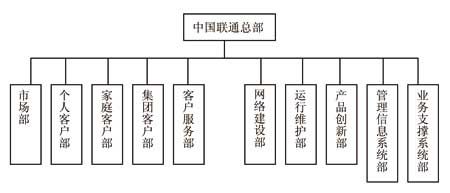 借電信重組契機,中國聯(lián)通也對組織架構進行了調(diào)整。在重組之前,原中國聯(lián)通的前臺部門有G網(wǎng)經(jīng)營部、增值業(yè)務部、數(shù)據(jù)固定業(yè)務部等,原中國網(wǎng)通有增值業(yè)務中心、公話業(yè)務管理中心、綜合信息業(yè)務中心、區(qū)域銷售管理中心等;重組之后,中國聯(lián)通成立了個人客戶部、家庭客戶部、集團客戶部,這些部門與市場部級別平行,具體如圖所示。