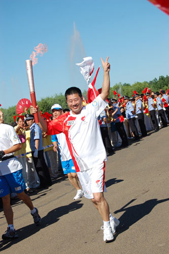 第三棒火炬手飛鶴乳業董事長冷友斌手持火炬