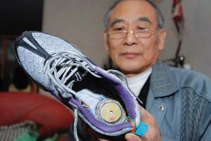 從外表上看,這雙運(yùn)動鞋很普通,可夜晚時(shí)將它穿在腳上,鞋子就會發(fā)出光線,足以照亮回家的路。更為神奇的是,這雙會發(fā)光的鞋還能為手機(jī)電池充電(上圖)。這雙發(fā)電鞋的發(fā)明者就是66歲的成都老人石才俊。