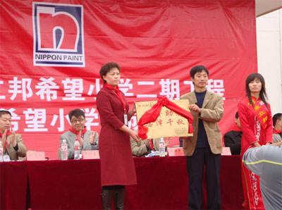 立邦(中國(guó))有限公司再度讓一所希望小學(xué)注入彩色的夢(mèng)想。2008年10月20日,立邦公司在山西捐建的一所希望小學(xué)二期彩色希望小學(xué)工程竣工。上午九點(diǎn),在雄壯的國(guó)歌聲中,立邦太谷希望小學(xué)二期工程暨彩色希望小學(xué)落成儀式正式開始。立邦公司領(lǐng)導(dǎo)同太谷縣副縣長(zhǎng)、太谷教育局局長(zhǎng)及河?xùn)|鄉(xiāng)書記、希望辦的領(lǐng)導(dǎo)一起,為其揭牌并參加當(dāng)天舉行的立邦捐贈(zèng)儀式,并參觀校園文化藝術(shù)節(jié)作品、觀看師生表演。