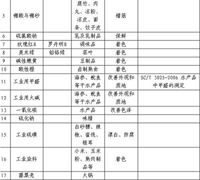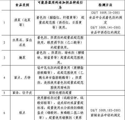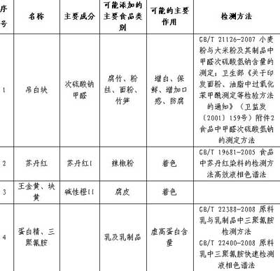 食品加工過程中易濫用的食品添加劑品種名單(第一批)