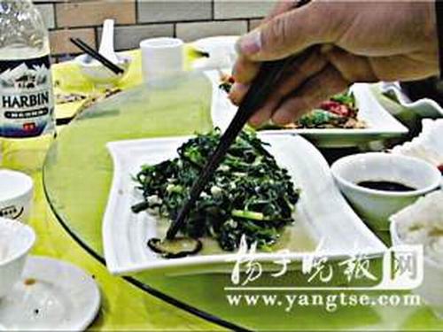 昨天傍晚,溫州人沙先生帶老鄉來到南京建康路附近一家飯店吃飯,飯吃到一半竟發現炒菠菜里有一條焦黑的蚯蚓,沙先生報了警。