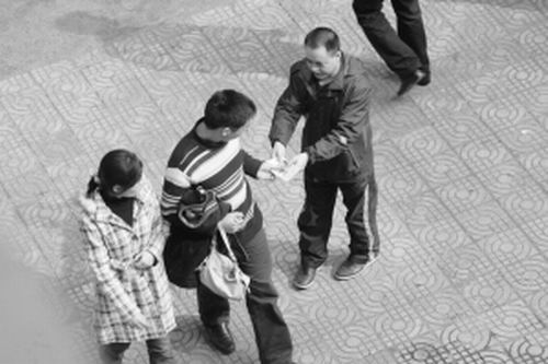 商家正在大學宿舍樓下向學生派發避孕套 記者 吳小川 攝
