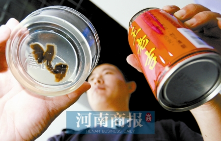 記者從鄭州市疾病控制中心理化室了解到,要檢測黏稠物質對人體是否有害,對普通消費者來講,也不太容易。工作人員葛先生說,對人體有害的物質和成分太多,無從檢測。“一項一項檢測的話,這罐王老吉用完都不夠,但是從食品感觀上說,這罐王老吉肯定是不合格的。”