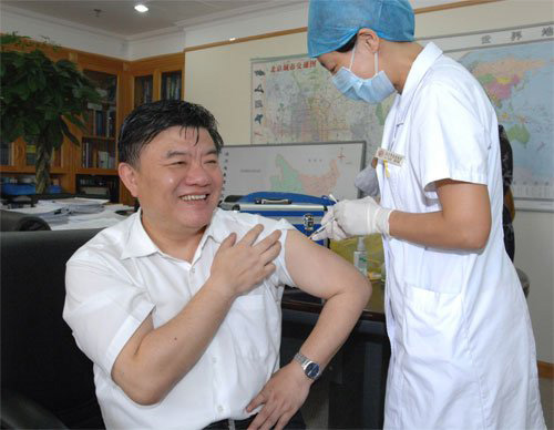 中新網(wǎng)8月12日電 今天起,中國自行研制的甲型H1N1流感疫苗臨床試驗受試者開始接種第二針,衛(wèi)生部部長陳竺作為第一個受試者,已于11日下午完成第二針接種。在第一針疫苗的接種觀察中,沒有發(fā)生嚴(yán)重不良反應(yīng)或時間,初步分析顯示,中國生產(chǎn)的甲型H1N1流感試驗用疫苗安全可靠。