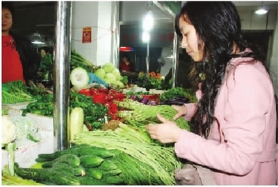 2月25日上午,長沙荷花池菜市場,只有幾個攤位有長豆角出售。記者魯軍攝