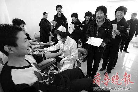 采訪中記者了解到,這45名同學(xué)都來自山東警察學(xué)院刑事科學(xué)技術(shù)系2007級本科三中隊和四中隊!25日,我看到齊魯晚報,才知道濟南第一例捐獻者是一名‘90后’的順菜工,同學(xué)們聽了都很受感動,我們都是‘80后’,不能輸給‘90后’呀!”四中隊的班長崔明波對記者說。