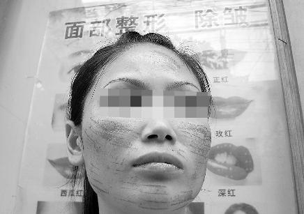 6月10日晚,喜歡美容的李信瓊在金花橋金興南路97號(hào)一家美容店內(nèi),做了一次所謂的“光子祛紅血絲”。但半個(gè)小時(shí)的功夫,她那張?jiān)詾楹赖陌變裘嫒荩共紳M了一條一條令人觸目驚心的“燒痕”。昨日,在屈辱和絕望的雙重打擊下,李信瓊再次來到店內(nèi)討要說法……