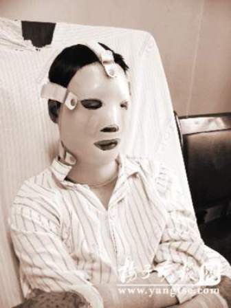 去年本報報道過的因燒傷而毀容的鹽城“面具男孩”昨天來到南京中大醫(yī)院復診,小伙子摘下面具露出“尊容”,醫(yī)生驚奇地發(fā)現(xiàn),通過戴1年左右的奇異特質(zhì)面具,小伙子面部恢復情況很好,完全沒有增生的疤痕和疙瘩。