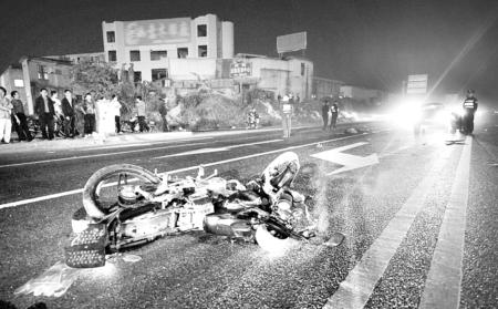 記者趕到現場時,警察正在勘查現場。一輛黑色的小轎車停在距紅綠燈路口停止線約30米的地方,車子的零部件散了一地,一輛摩托車倒在小車前方約20米遠的位置,距小車5米左右的地方還仰面躺著一名十多歲的少年,腦后一大攤血,已經身亡。目擊者劉先生說,摩托車駕車者是個 30多歲的男子,車上載著3名十多歲的少年。多位村民表示,這段路沒有路燈,對面有車開來時,車燈晃眼,很危險。目前3位傷者的傷勢嚴重,正在搶救中,事故原因正在進一步調查中。 (本網記者 曾力/文 林丹/圖)