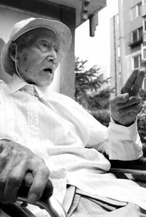老人最喜歡吃的食品有牛奶、雞蛋、地瓜、香蕉、餃子、紅燒肉等。他從年輕時(shí)候起飯量就不大,從不暴飲暴食,現(xiàn)在每餐也只吃七八分飽,最喜歡的紅燒肉和餃子,也只吃五六口。社區(qū)醫(yī)院每月都來(lái)給老人檢查身體,老人各項(xiàng)指標(biāo)均正常,沒(méi)住過(guò)醫(yī)院,感冒發(fā)燒都極少。前幾天高溫,老人患了肺內(nèi)感染,也只打了3天吊瓶,多打一天他都不讓,而且堅(jiān)決不吃藥,他說(shuō)“是藥三分毒”。老人滿口假牙,吃飯時(shí)飯菜必須軟爛;眼睛有些花,報(bào)紙上的大字還能看清;一只耳朵失聰,另一只耳朵有點(diǎn)背,跟他說(shuō)話得大點(diǎn)兒聲。