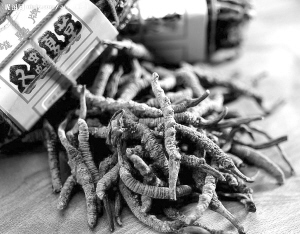 冬令服食冬蟲夏草是一件時髦事兒。現(xiàn)在的市場價是48萬元1公斤,價錢勝黃金。想當初,上世紀80年代,國家的收購價是1公斤200-300元,那時醫(yī)院藥房是用大鐵盒裝此藥的。
