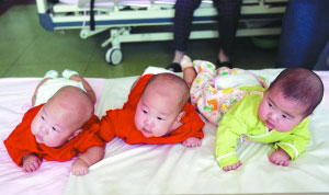 昨天,撤除了監護設備后,哥倆的病房顯得更加寬敞了,但他們的父母、爺爺奶奶卻更加忙了,3個孩子餓起來一塊哭鬧,讓長輩們忙前忙后地沖奶、喂奶!敖憬惚雀鐐z能吃,體重也比哥倆重!北本┸妳^總醫院兒外科值班醫生盧洪流說,三姐弟出生至今已有100多天,姐姐目前的體重是12斤多,小哥倆兒的體重有11斤多。