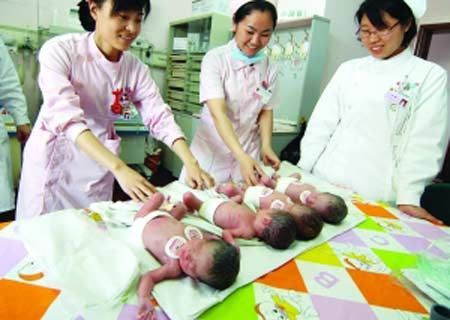 6月3日下午2時(shí)15分,伴隨著一聲聲嬰兒的啼哭,兩“龍”兩“鳳”四胞胎相繼在青醫(yī)附院婦產(chǎn)科誕生。孩子們的父親王磊為其取名“歡歡、迎迎、奧奧、運(yùn)運(yùn)”,連起來就是“歡迎奧運(yùn)”,據(jù)了解,四兄妹是自然受孕的雙卵四胞胎,目前情況基本穩(wěn)定。