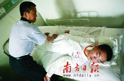 1994年,從兒子在卡車上摔下癱瘓那一天起,黑龍江伊春市湯旺河區二清河林場的丁國福就開始了漫長的奔波。為了讓兒子早日站起來,丁國福不惜傾家蕩產,甚至當乞丐。昨日,人稱“丁百萬”的丁國福帶著兒子來到廣州解放軍四二一醫院求醫。