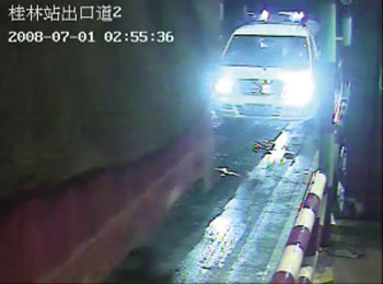 救護車進站時的監控錄像截圖。