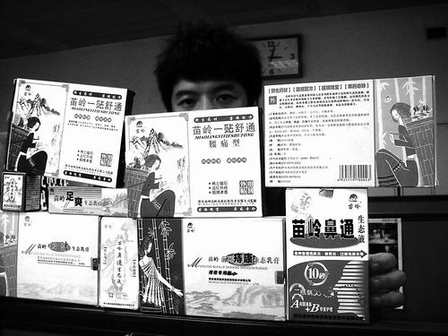記者看到,在苗嶺鼻通生態(tài)液的包裝上面赫然寫著“衛(wèi)生許可證黔衛(wèi)消證字(2005)第037號(hào)”。在該藥店擺放的苗嶺系列產(chǎn)品“苗嶺前列痔康生態(tài)乳膏”、“苗嶺一貼疏通膏藥”、“苗嶺婦潔生態(tài)乳膏”、“苗嶺足爽生態(tài)乳膏”也都印著“衛(wèi)生許可證黔衛(wèi)消證字(2005)第037號(hào)”的字樣。“這么多產(chǎn)品為什么都是‘黔衛(wèi)消證字(2005)第037號(hào)’?”記者問(wèn)。營(yíng)業(yè)員看后也納悶了:“我也說(shuō)不清楚,不過(guò)我們這藥賣得可好了,我姐家孩子還用呢。”