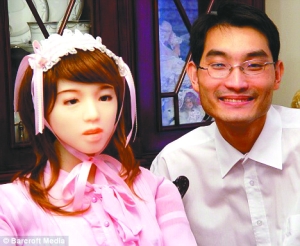 勒同(右)沒時(shí)間談戀愛,卻花盡積蓄造出機(jī)器人當(dāng)女友。
